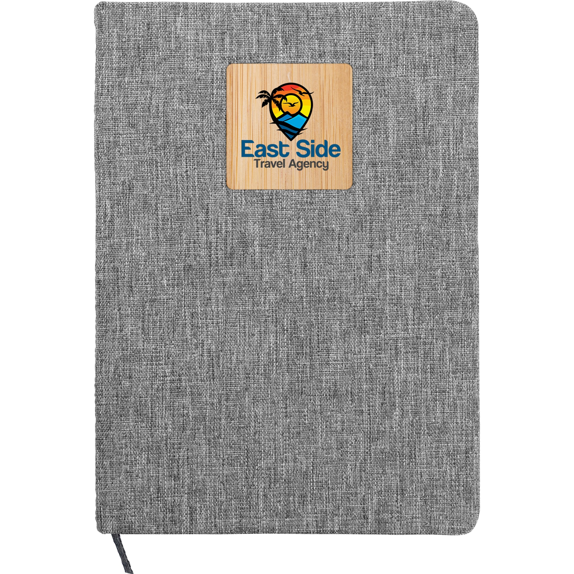 Eco-conscious consumers will love our notebook featuring a recycled PET cover and FSC certified pages. The sleek gray heathered fabric cover adds a touch of sophistication, while the bamboo plate accent with Full Color imprint provides a unique and stylish look. Rest assured knowing that our supplier is FSC certified with the code SCS-COC-007184, ensuring the highest standards of sustainability. Complies with FSC, Prop 65. 5.5″ L x 8.25″ H